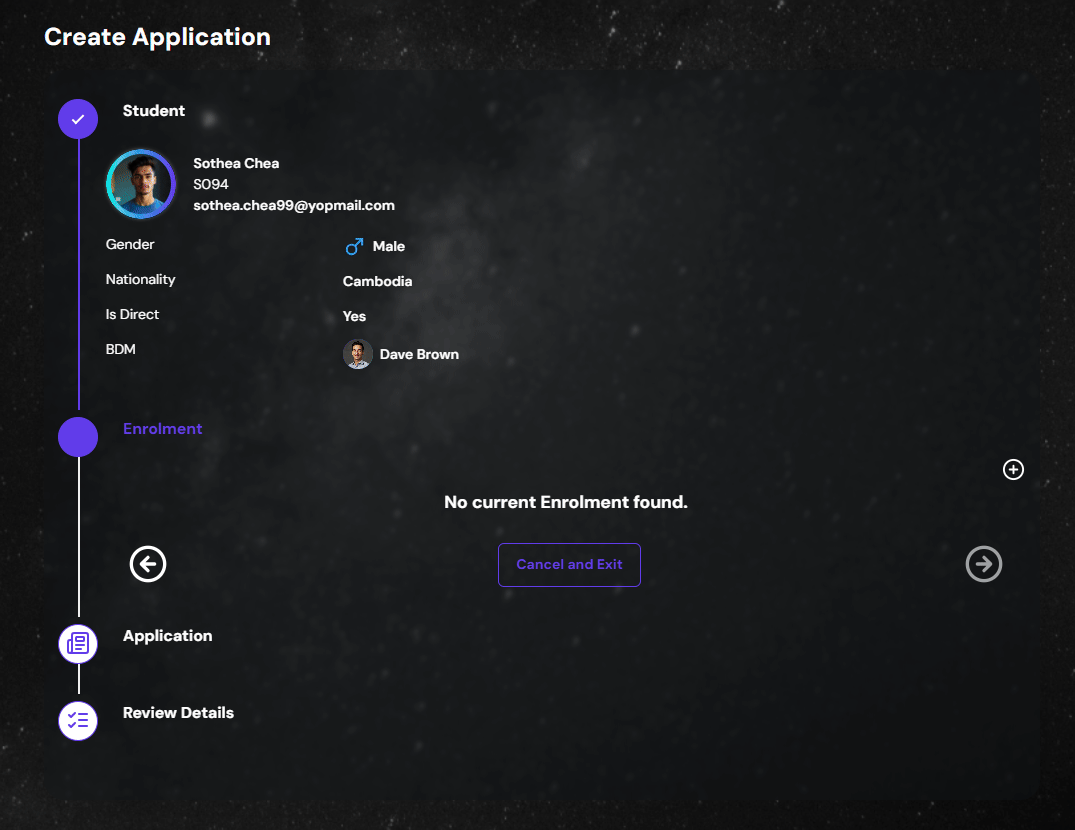 Enrolment is the opportunity the student brings to the company. In order to cash this opportunity, the student is given multiple options which is the application. Only one enrolment can exist at a given time. Addition of any application will be under the same enrolment.