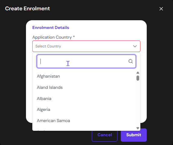 • Application Country: Where the student is applying from or current location of the student, not the nationality.