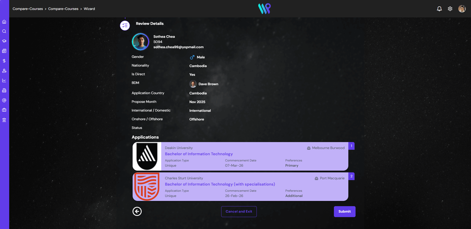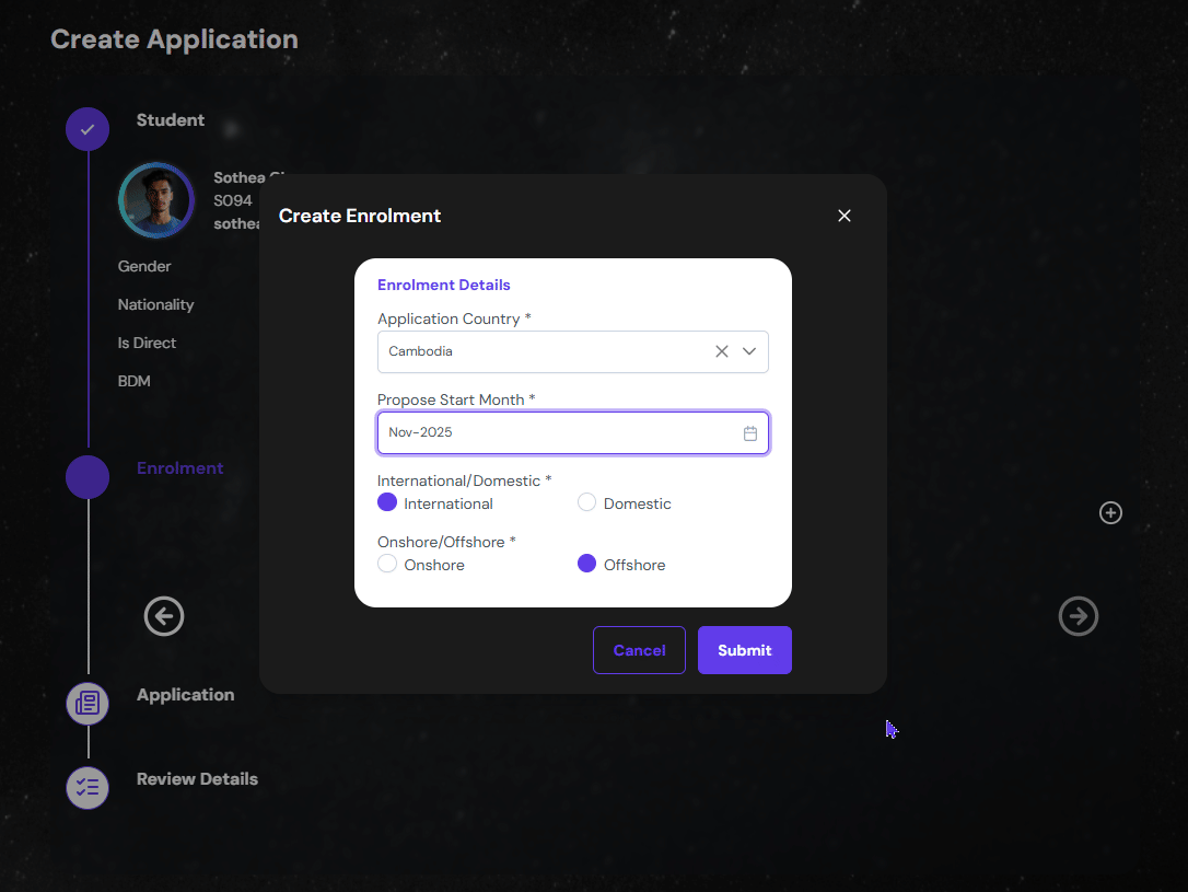 • And, if the student is Onshore or Offshore student.