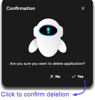 A confirmation pop-up comes appears where you can click ‘Yes’ to confirm. Another pop-up appears to confirm the deletion.