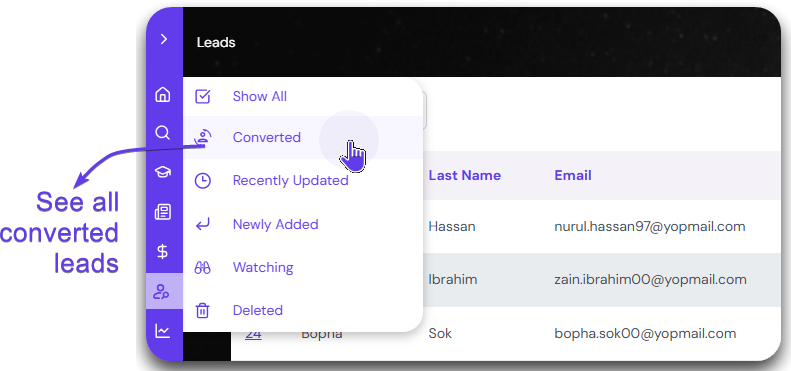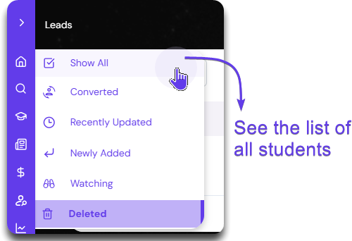 Click on Converted to see all the leads converted to student.