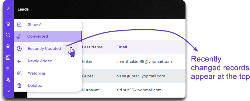 Click on Recently Updated to see the most recent records at the top.