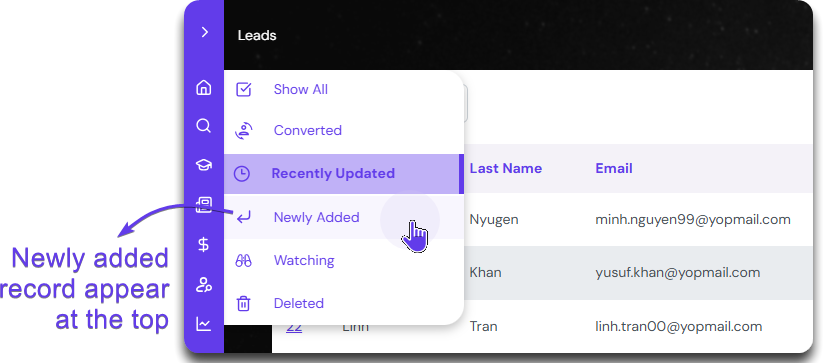 Click on Newly Added to have the most recent records at the top.