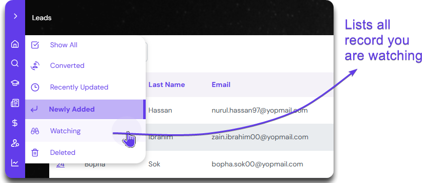 Click on the “Leads” on the main menu bar. All the lead records will be visible.
