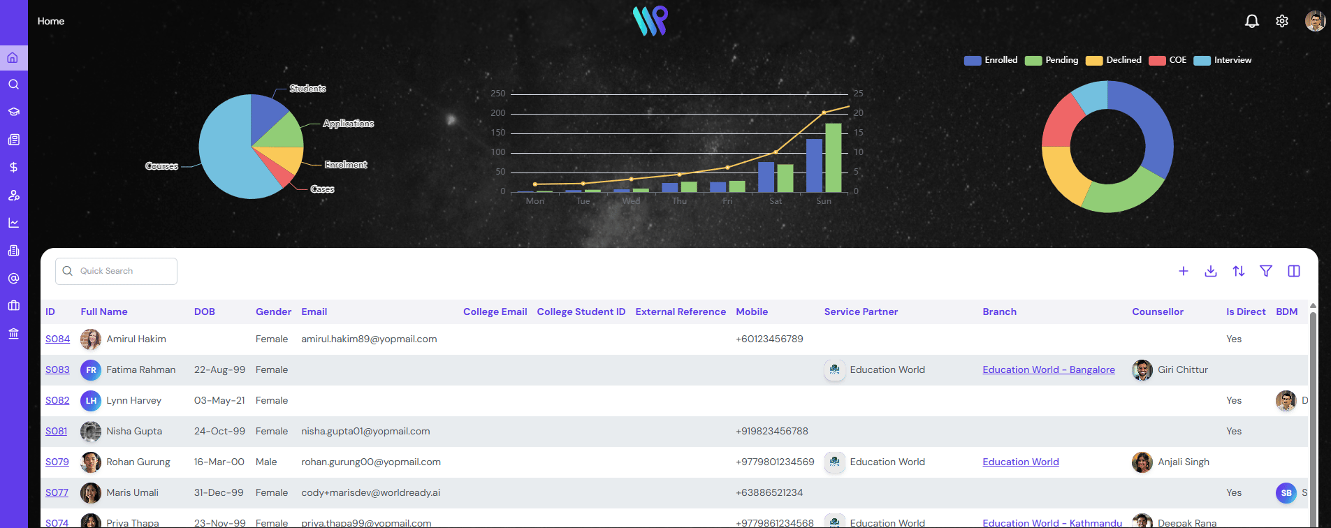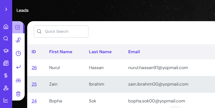 Click on the Search bar to search for any lead record with Lead ID, Student Name, Email ID etc.