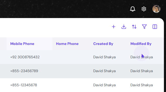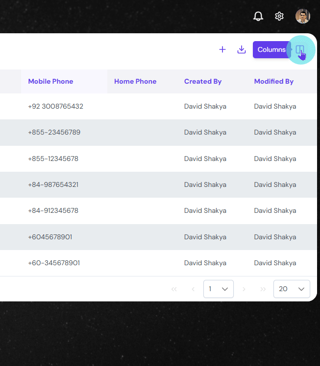 Lastly, view all the column or only the desired columns by clicking the Show/Hide Column button on the far right of the Action Button