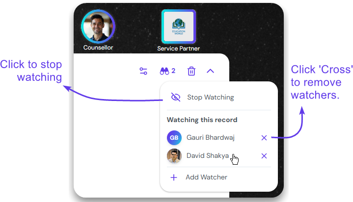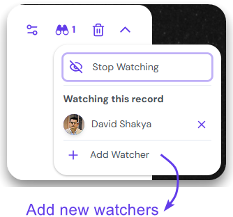 The new watcher will be listed under ‘Watching this record’ section.
