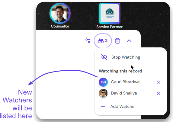 You can add additional watchers to this record by clicking on the ‘Add Watcher’.