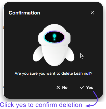A confirmation pop-up comes appears where you can click ‘Yes’ to confirm. Another pop-up appears to confirm the deletion.